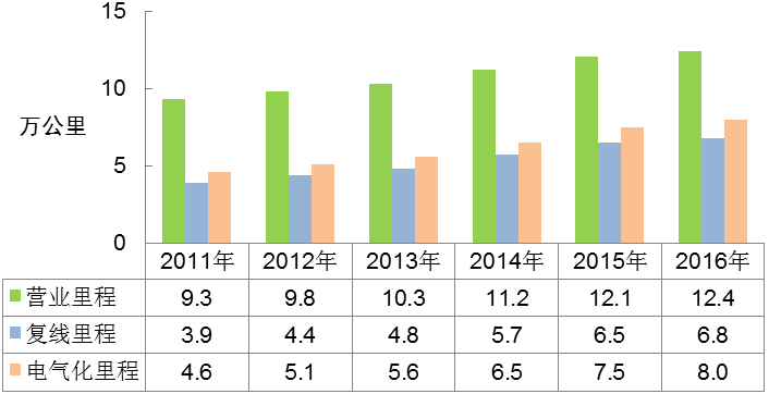 铁路营业里程中,复线里程6.8万公里,比上年增长5.2%;电气化里程8.0万公里,增长7.4%。
