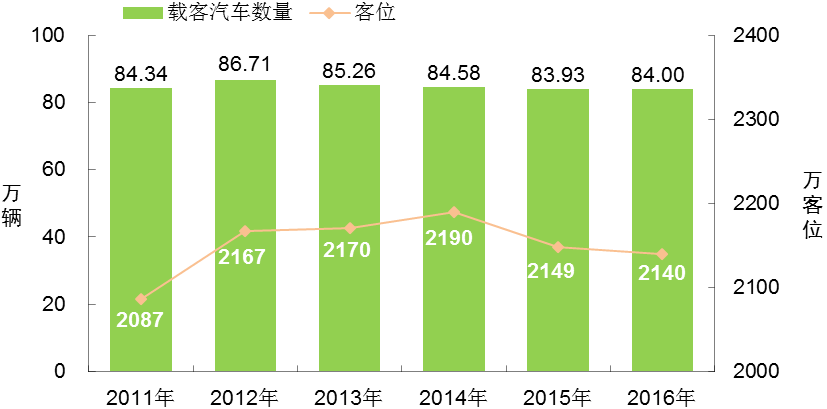 拥有载客汽车84.00万辆,比上年增长0.1%,2140.26万客位,减少0.4%。其中大型客车30.57万辆,增长0.2%,1332.57万客位,增长0.6%。