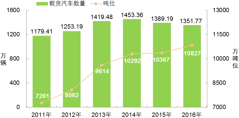 拥有载货汽车1351.77万辆,比上年减少2.7%,10826.78万吨位,增长4.4%。其中,普通货车946.03万辆,减少6.5%,4843.83万吨位,减少2.8%;专用货车47.56万辆,减少1.7%,527.63万吨位,增长4.9%。