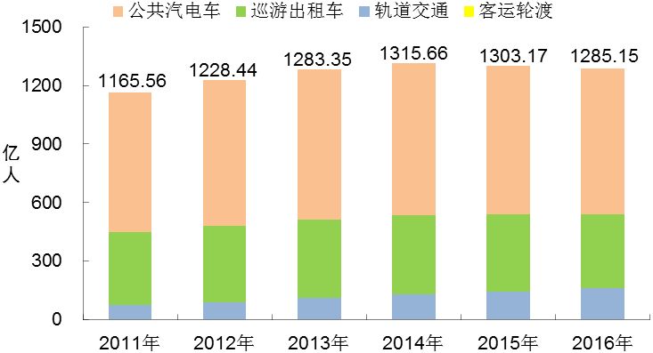 全年完成城市客运量1285.15亿人,比上年下降1.4%。其中,公共汽电车完成745.35亿人,下降2.6%,其中BRT客运量17.65亿人次,增长23.2%,公共汽电车运营里程358.32亿公里,增长1.7%;轨道交通完成161.51亿人,增长15.4%,运营里程4.33亿列公里,增长15.7%;巡游出租车完成377.35亿人,下降4.9%,运营里程1552.50亿公里,下降3.1%;客运轮渡完成0.94亿人,下降7.2%。