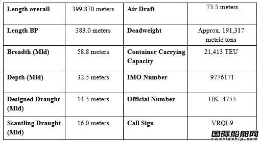 图:“东方香港”号船型数据