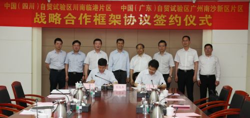 考察过程中,中国(广东)自由贸易试验区广州南沙新区片区和中国(四川)自由贸易试验区川南临港片区还签订了《战略合作框架协议》。