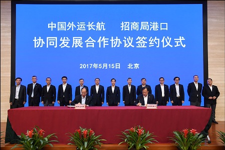 中外运长航总经理宋德星、招商局港口总经理白景涛分别代表双方签署合作协议。出席签约仪式的还有招商局集团办公厅、人力资源部、战略发展部、综合交通部、资本运营部负责人,以及中外运长航、招商局港口、中外运股份、招商物流等经营单位代表。