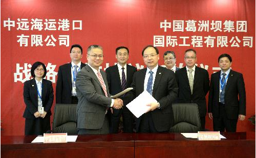 中远海运集团 5月17日,中远海运港口有限公司(COSCO SHIPPING Ports Limited,股份代号:1199.HK)与中国葛洲坝集团国际工程有限公司在京签署战略合作协议,开启了双方在全球港口投资、建设以及物流领域携手并进的新篇章。双方一致表示,将本着友好、合作、互惠、共赢的原则,建立长期稳定的战略合作伙伴关系,合作共赢、共同发展,并在亚洲、欧洲、南美、中东等区域进行务实合作。中远海运港口有限公司董事会副主席兼董事总经理、执行董事张为,中国葛洲坝集团股份公司党委常委、副总经理、葛洲坝国际公司董事长、葛洲坝海投公司董事长陈晓华代表双方在协议书上签字。葛洲坝国际公司总经理吕泽翔主持签约仪式。