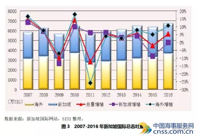 受全球贸易低迷,集装箱运输需求仍旧疲软的影响,新加坡国际表现仍然欠佳,2016年全年完成吞吐量6763万TEU,同比增长5.5%,虽然由于新加坡国际海外业务的拓展,其完成海外吞吐量3704万TEU,同比增长10.6%;但相比之下,作为集团主要盈利来源的新加坡本土吞吐量仅3059万TEU,同比下降0.1%,增速已连续两年趋于负区间。