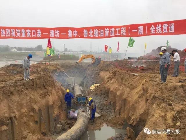 航运交易公报 6月29日上午,随着204国道穿越点最后一处焊接完成,备受瞩目的青岛港董家口港—潍坊—鲁中、鲁北输油管道一期工程经过9个多月的紧张施工,胜利实现全线贯通。