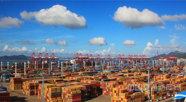 浙江省宁波舟山港是全球首个年货物吞吐量突破9亿吨的港口。图为宁波舟山港穿山港区集装箱码头。