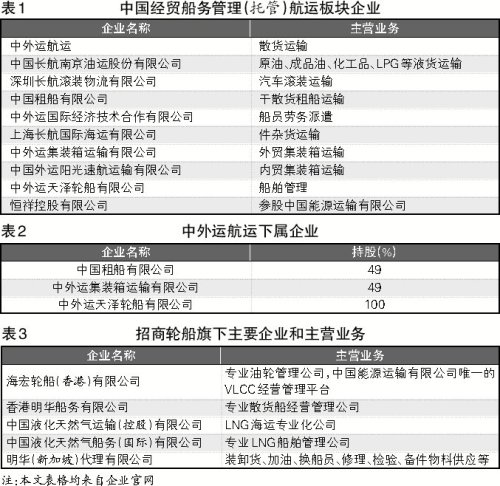 目前,中国经贸船务管理的航运板块企业共有10家(见表1),其中包含1家香港上市公司——中外运航运(00368.HK),及其3家下属企业——中国租船有限公司、中外运集装箱运输有限公司和中外运天泽轮船有限公司(见表2)。
