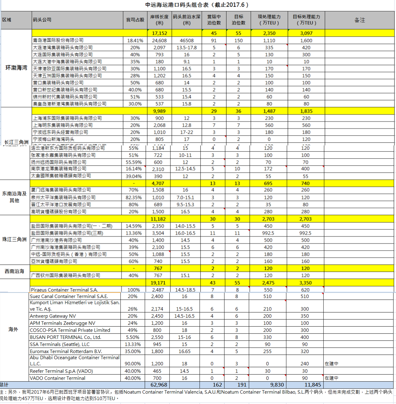 中远海运港口码头组合表