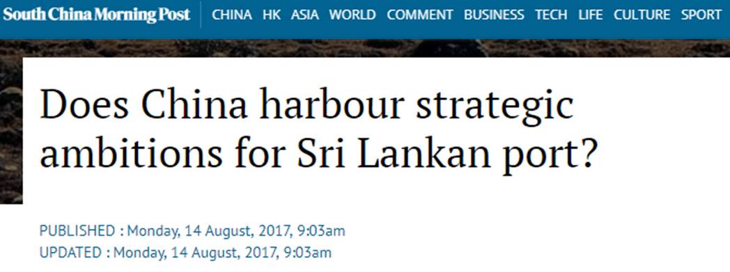 与印度有紧密的传统和文化联系的科伦坡否认中国将使用汉班托塔港口满足战略目的。