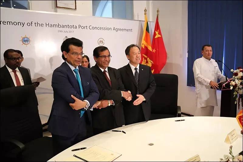 ▲7月29日,中国招商局港口控股有限公司与斯里兰卡港务局在斯里兰卡首都科伦坡正式签署汉班托塔特许经营协议。(招商局集团官网)