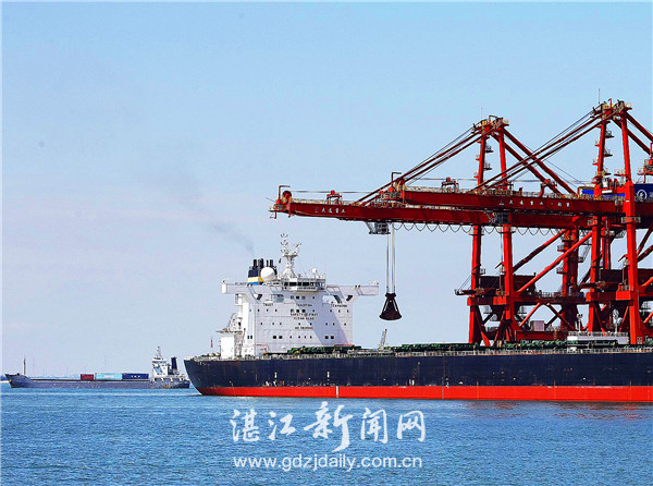 靠泊在湛江港的大型船舶正在装卸作业。记者 李波 摄