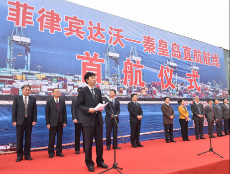 河北港口集团、秦皇岛港股份有限公司董事长曹子玉表示,“为党报国、担当负责、服务地方、客户至上”是河北港口集团企业文化的核心理念。在秦皇岛市委、市政府关心支持下,我们与河北中运集团、富辰致远(北京)投资公司共同成立了秦皇岛禾港有限责任公司,以发展农产品进出口贸易为平台,创新物流模式,提供经济便捷的港口物流全程服务,抢占行业制高点,打造进境水果口岸市场,实现港口经营、物流产业、区域经济高效协同发展。港口将做好装卸环节工作,全力为船东和货主提供优质服务;与口岸部门密切合作,全力打造精品航线;同中远海运集装箱公司一道,加强航线营销管理,让航线不断增量稳定发展;充分发挥港口优势,将“菲律宾达沃-秦皇岛”直达航线建设成为一条多方互惠互利、合作共赢、充满活力、共同发展的商贸物流大通道。