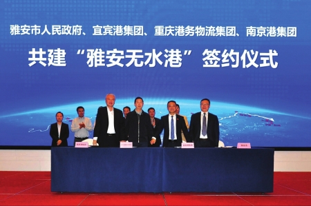 “非常荣幸能够同南京港、重庆港、宜宾港签订‘四川雅安无水港’项目的战略合作框架协议。相信这个项目一定会让我们互利共赢,给雅安带来大的发展。”雅安市商务和粮食局局长罗国强介绍,雅安无水港总投资约3亿元,预计在2018年开工建设,于2019年投入运行,项目占地面积约600亩,无水港的建设将推动雅安加快走出去的步伐,推动物流行业降低成本和经济的转型发展。