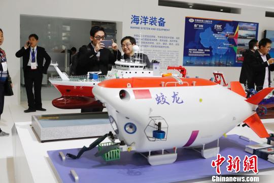 蛟龙号载人潜水器在展会上备受关注。(记者 殷立勤 摄影)