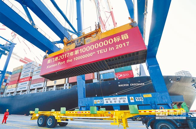 《旺报》12月27日报道称,高雄港本月22日今年集装箱装卸量已突破1千万TEU(20英尺标淮集装箱);但福建的厦门比高雄港提前2天(20日)达到1千万。去年排名全球第17大集装箱港口的高雄港,今年上半年抢进到第13,但随后被排名第14的比利时安特卫普港迎头赶上,还可能被去年排名第20的厦门港超越,落居全球第15名,台湾港务公司展开“保13大作战”,成败就在这几天。