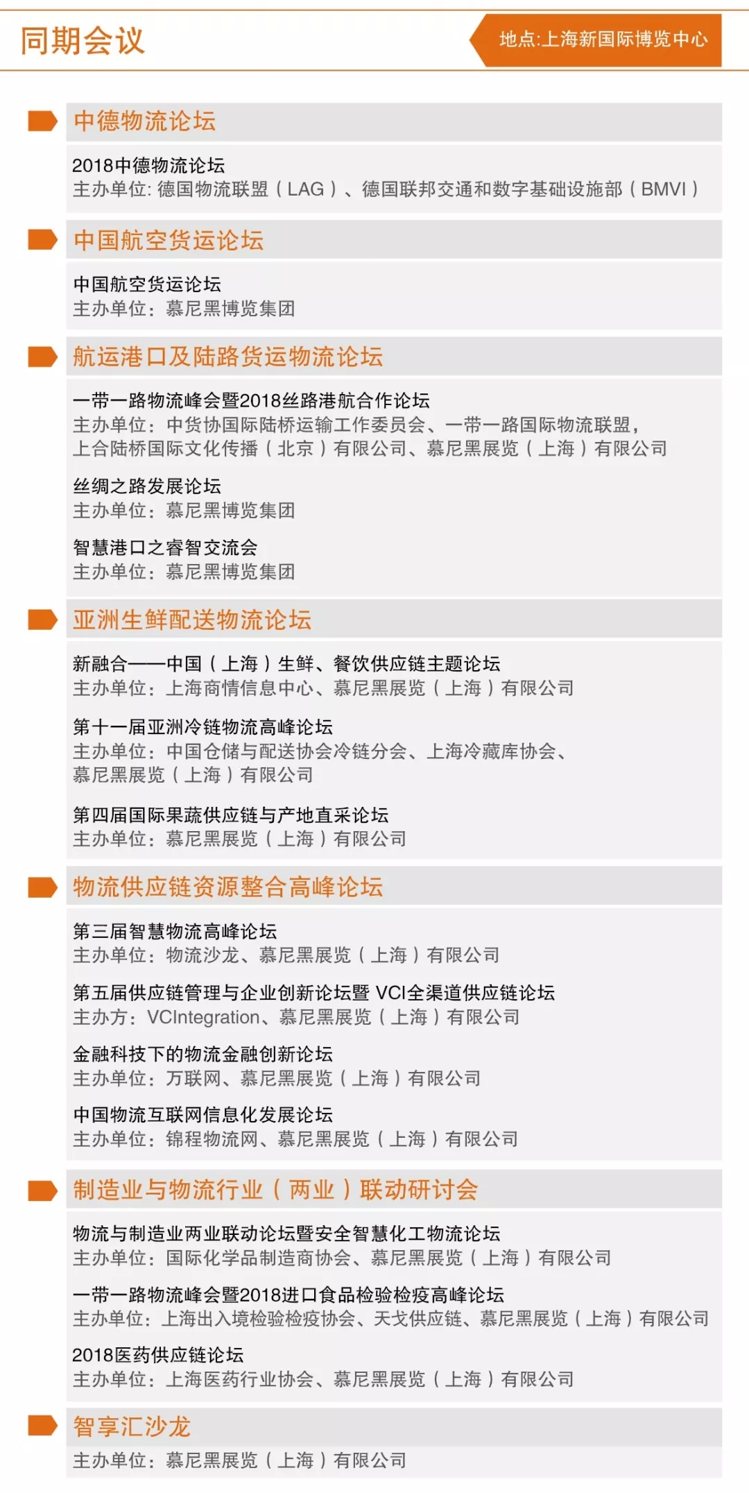 亚洲物流双年展同期还会举办一系列丰富、高品质的同期论坛、沙龙和商贸对接活动,涵盖一带一路、航空货运、生鲜配送、冷链物流、产地直采、农产品果蔬供应链、城市物流、智慧物流、互联网+物流等行业焦点话题。