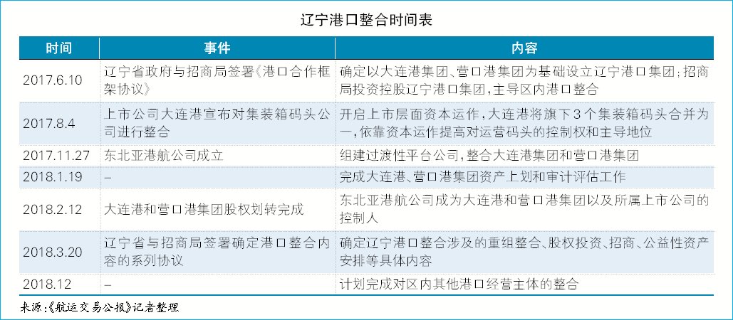 继2017年6月大连港、营口港、锦州港三家上市公司披露辽宁省政府与招商局集团签署《港口合作框架协议》后,辽宁省港口整合再进一步。