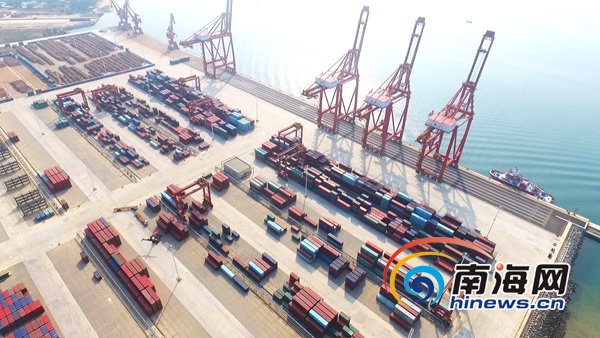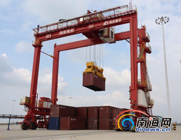 国际港务洋浦小铲滩码头的塔吊机正在作业。南海网记者王全印摄
