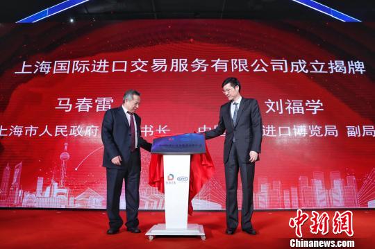 上海市政府副秘书长马春雷和中国国际进口博览局副局长刘福学揭牌 殷立勤 摄