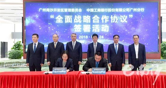 4月24日上午,广州南沙开发区管委会与中国工商银行股份有限公司广州分行、工银金融租赁有限公司、广州航运交易有限公司在南沙区政府举行“金融支持南沙国际航运中心建设”战略合作协议暨“政银全面战略合作协议”签署活动。