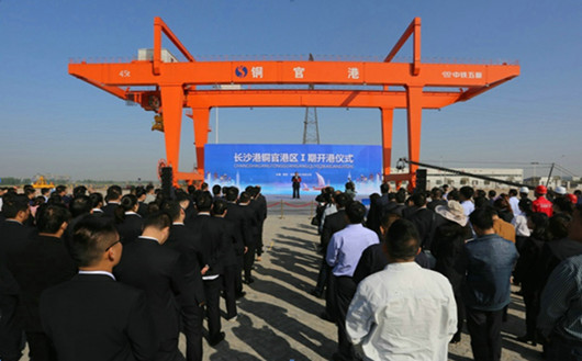 4月18日,作为湘江“黄金水道”重要物流枢纽港口,长沙港铜官港区一期码头正式开港试运行。
