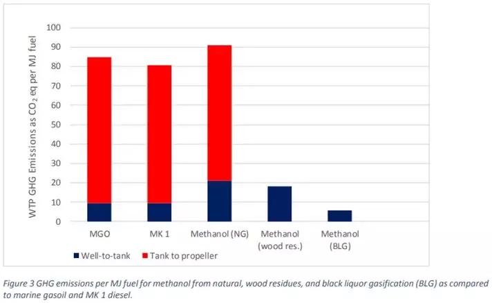· 通过与传统柴油机燃料对比,在小型船只上使用可再生甲醇,其温室气体排放量可降低75%至90%;