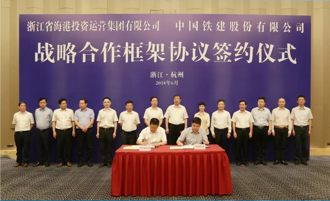 6月6日,浙江省海港集团与中国铁建股份有限公司在杭州签署战略合作框架协议。根据协议,双方将加强在项目设计、投资、施工及经营领域的合作,探索建立混合所有制企业,结对参与“一带一路”建设,积极对接全球市场。