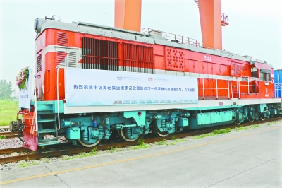 右图:满载湖北生产的机械产品、汽车零部件的“中远海运集运汉欧班列”首发 王遥遥 摄