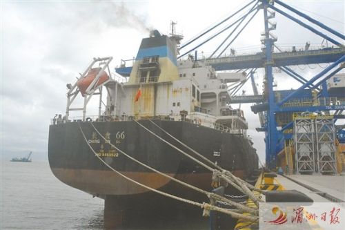 7月17日上午,罗屿港口进行开港试运行阶段首靠船卸船作业(如图)。这标志着我国东南沿海最大的矿石码头已全面建成,并迈出全面投产的第一步,正式进入试运行阶段。