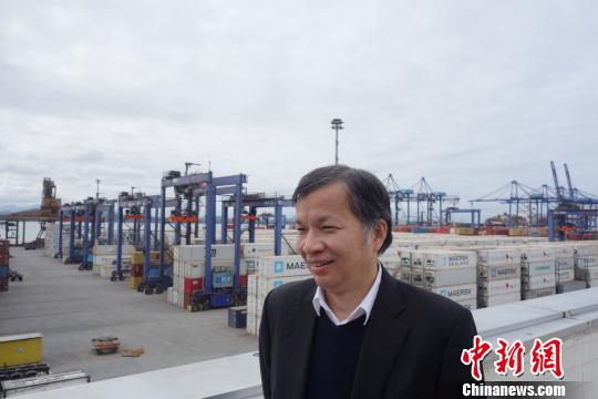 图为8月28日招商局港口副总经理兼TCP公司董事长陆永新在巴西巴拉那瓜港接受记者采访。莫成雄摄