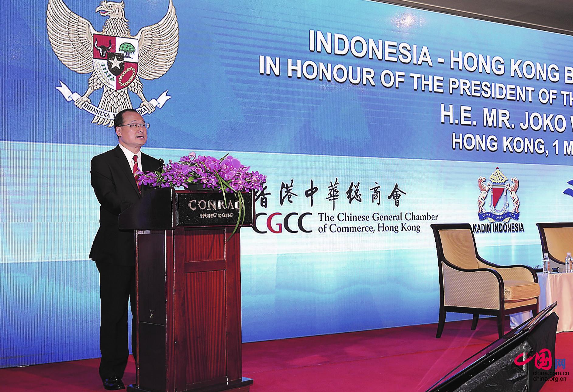 蔡冠深主持“印尼-香港商界交流会”。(受访者供图)