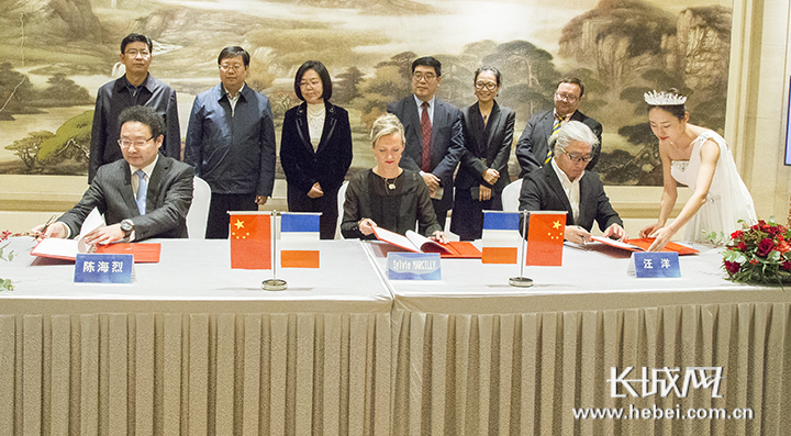 长城网讯(记者刘志琳)10月24日,河北港口集团与法国滨海夏朗德省政府、秦皇岛鸿洲国际游艇俱乐部有限公司在石家庄就合作发展河北省水上运动产业进行签约。
