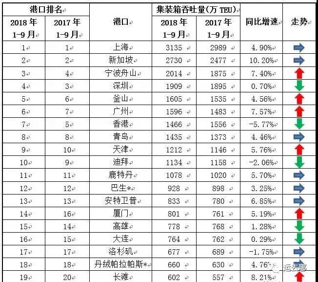 日前,上海国际航运研究中心发前三季度全球前二十大港口货物吞吐量排名。前二十大港口中,并未杀出黑马,但排位出现一些微妙变化。根据目前的走势来看,应该可对全年排位了然于胸。