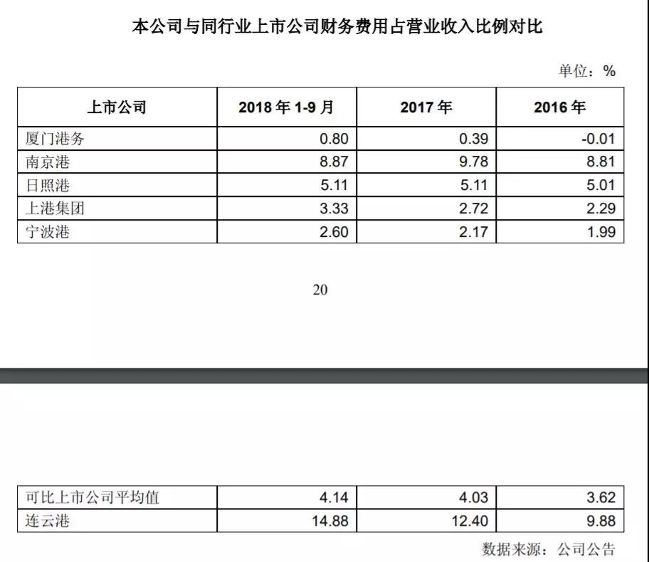 由于连云港所处的港口行业属于资本密集型产业,对资金投入的需求较大。截至2018年9月30日,公司有息负债合计35.64亿元,占总负债比率91.76%,其中15.25亿元为短期借款。