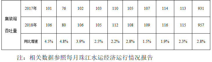 2.外贸货物吞吐量增速持续回落。前三季度,我国货物进出口总额22.28万亿元,同比增长9.9%。其中,出口11.86亿元,增长6.5%;进口10.42亿元,增长14.1%。但受对外贸易影响,以外向型经济为主的珠三角等腹地经济形势较为严峻,珠江水系规模以上港口外贸吞吐量增速为2.2%,自4月份后增速持续回落至2%以下。