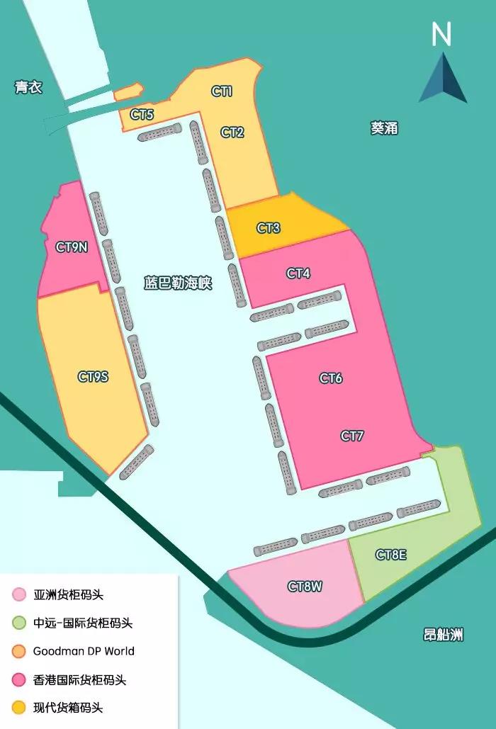 根据披露,中远-国际码头在8号码头东拥有2个泊位,由公司及和记港口信托透过中间控股公司分别持有50%股权。亚洲货柜码头在8号码头西拥有2个泊位,由公司及和记港口信托透过中间控股公司分别持有60%及40%股权。香港国际货柜码头为和记港口信托全资附属公司,在4号、6号、7号及9号码头北一共拥有12个泊位。现代货箱码头为九龙仓集团有限公司(“九龙仓”)非全资附属公司,在1号、2号、5号及9号码头南一共拥有7个泊位。