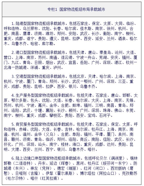 为贯彻落实党中央、国务院关于加强物流等基础设施网络建设的决策部署,科学推进国家物流枢纽布局和建设,发展改革委、交通运输部会同相关部门研究制定了《国家物流枢纽布局和建设规划》,经国务院同意,现印发你们,请认真贯彻执行。