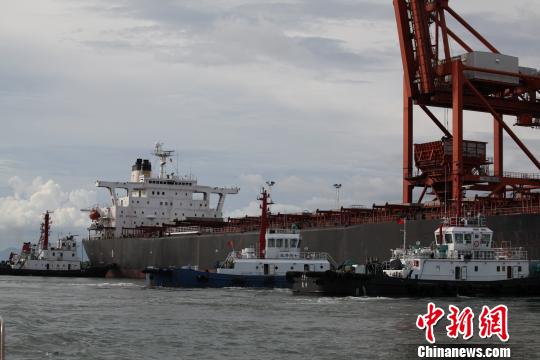 图为惠州港内正在作业中的30万吨级超级油轮。惠州海事局提供