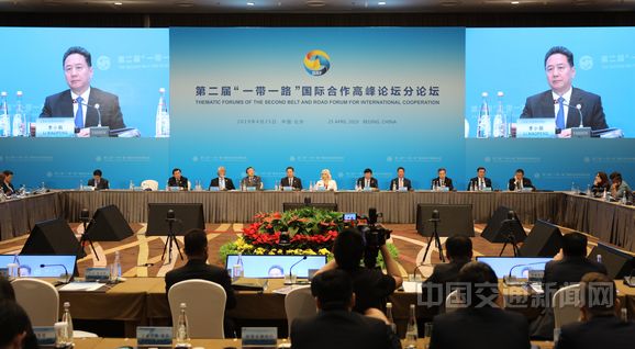 4月25日下午,第二届“一带一路”国际合作高峰论坛设施联通分论坛在国家会议中心举办。本次论坛以“安全畅通 智能高效”为主题,由国家发展改革委、交通运输部主办。交通运输部部长李小鹏致开闭幕辞,国家发展改革委副主任胡祖才主持会议,工业和信息化部副部长陈肇雄、国家能源局局长章建华在会上发言。交通运输部领导冯正霖、马军胜、戴东昌、王志清出席会议。