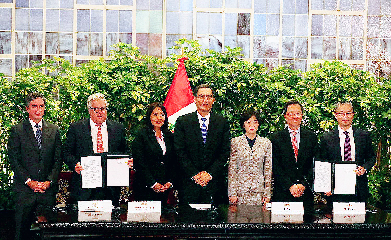 当地时间5月13日下午,中远海运秘鲁钱凯项目正式交割仪式在位于秘鲁首都利马市中心的总统府举行。秘鲁总统比斯卡拉、交通和通信部长哈拉、外交部长波波利西奥和外贸旅游部长巴斯克斯、中国驻秘鲁大使馆临时代办李昀、经商参赞郝沁梅和中国远洋海运集团董事长许立荣出席交割仪式。中远海运港口主席兼董事总经理张为和火山矿业主席何塞?毕加索代表双方签署交割证书。
