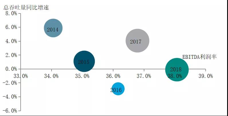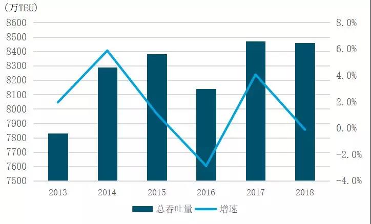 图1 2013-2018年和记黄埔集团总吞吐量