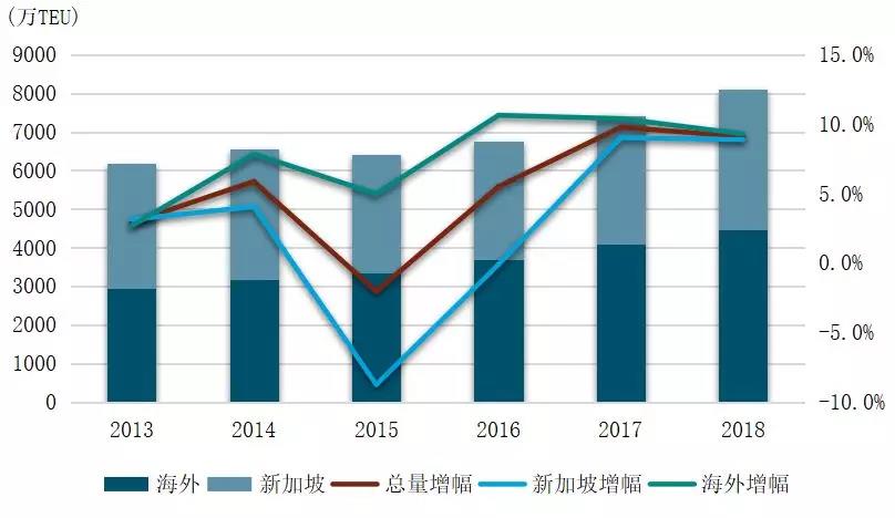 图4 2013-2018年新加坡国际港务集团总吞吐量