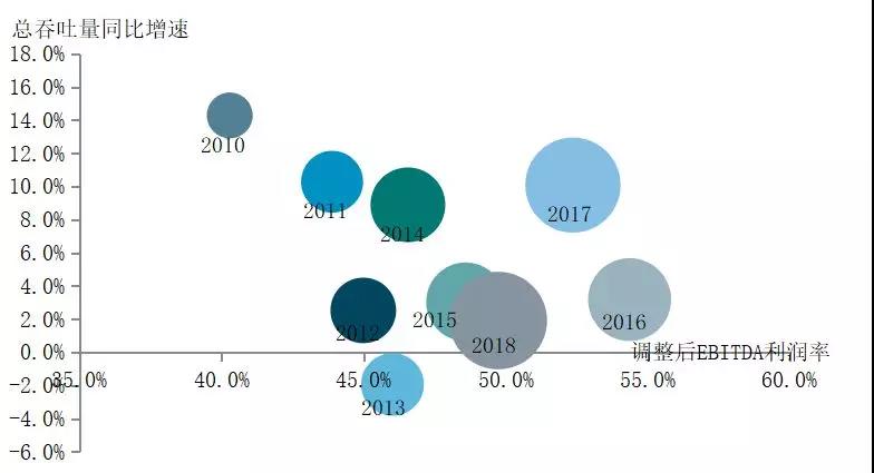 图6 2018年迪拜环球总吞吐量及利润率变化