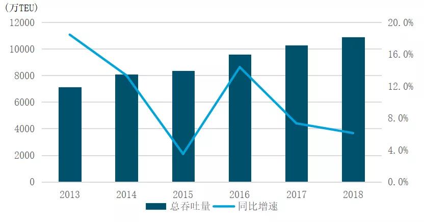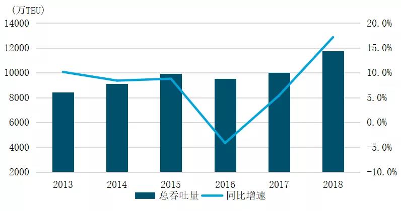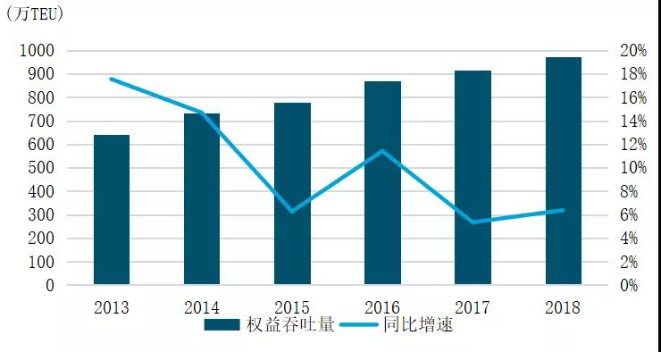 图7 2013-2018年中远海运港口总吞吐量