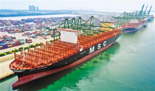 新华社天津7月8日电(记者毛振华、张宇琪)8日,世界载箱量最大的集装箱船舶“地中海古尔松”轮在天津港正式开启首航之旅。这艘刚刚于7月4日下水的海上巨轮,在天津港完成3000余标准箱的外贸出口作业后,将途经多个港口,前往西北欧地区。