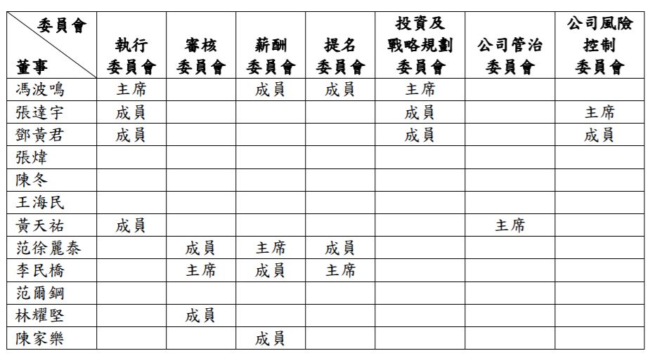 董事会下设 7 个委员会,各董事会成员在委员会担任的职位情况如下:
