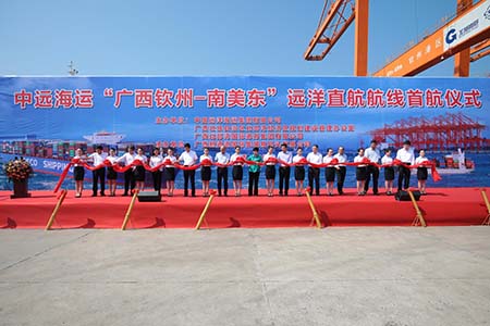 9月20日,“广西钦州-南美东”跨洋航线首航仪式在钦州保税港区集装箱码头顺利举行,这是首条从北部湾港钦州港区始发前往南美洲的远洋直航航线,有效填补了广西北部湾港连接南美洲地区远洋直航航线的空白,为广西和西南地区外贸企业开展南美洲地区进出口业务提供了更加高效、便捷、经济的海上物流渠道。此次钦州海事部门助力航线顺利开通是以实际行动服务自贸区、西部陆海新通道建设的有力举措。