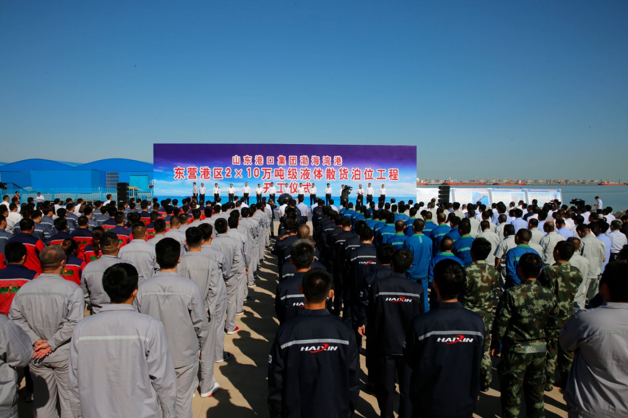 2×10万吨液体散货泊位项目是以山东港口集团的全资子公司山东渤海湾港口集团与万通海欣控股集团股份有限公司成立的混合所有制企业——山东渤海湾海欣港务有限公司为主体建设的,该项目不仅是东营港自1984年开港以来建设的第一个10万吨级码头项目,也是渤海湾三市四港首个10万吨级码头项目,设计年通过能力为980万吨,预计2021年8月建成。