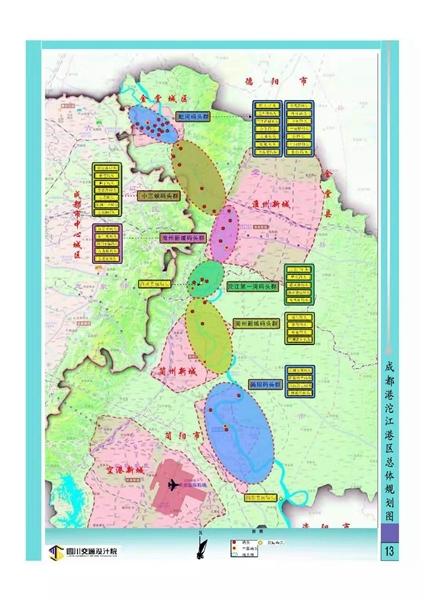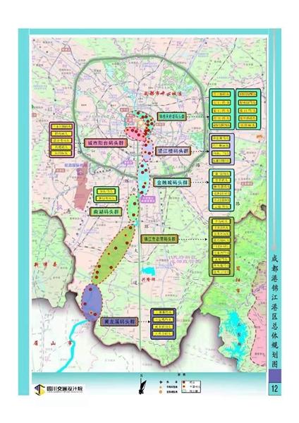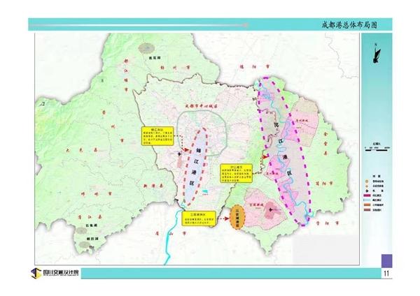 根据规划,成都港划分为锦江港区、沱江港区、三岔湖港区,形成“两江一湖”港区为主,其它港点为补充的总体格局。